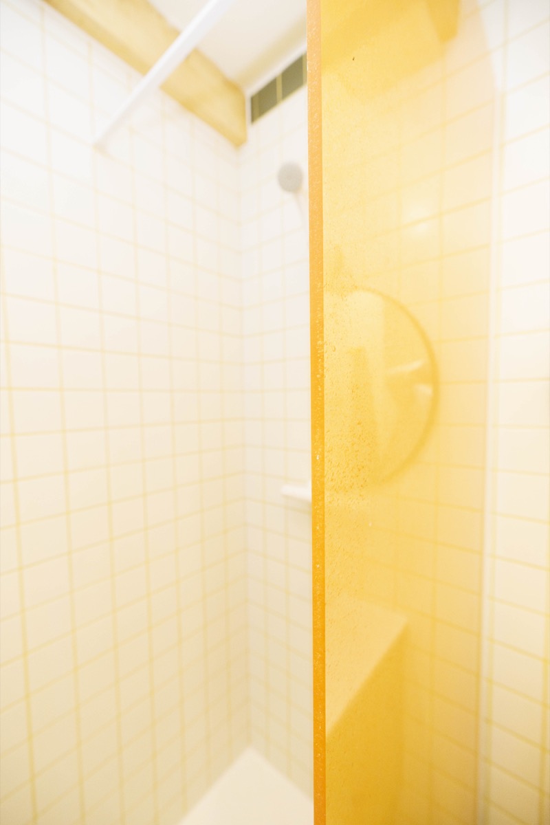 Pour ce projet, le Polygood Translucent Orange en 12 mm a été choisi comme matériau principal. Fabriqué à partir de plastique recyclé, il offre une transparence subtile et vibrante qui illumine les espaces. Ce matériau, conforme aux normes de sécurité alimentaire, a été façonné pour créer des étagères, des vitrines de douche, des crédences de salle de bain, et bien plus encore.
