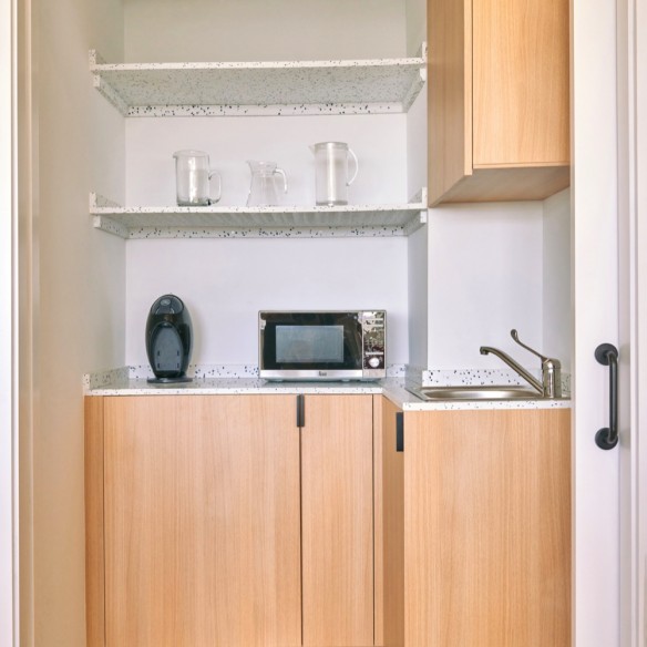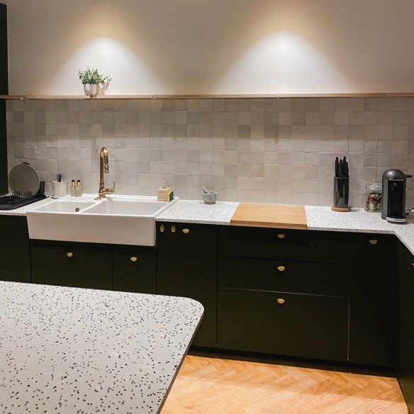 Hydrofuges, ces panneaux sont idéaux pour des environnements humides, mais ils sont sensibles à la chaleur et ne doivent pas être exposés à des températures supérieures à 90 degrés. Il est donc recommandé d’utiliser des dessous de plats pour protéger la surface des éléments chauds.